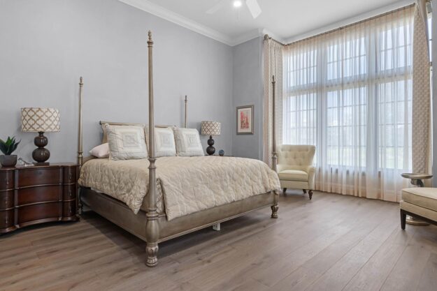 The project involved an addition of approximately 1,600 sq ft. of finished space, a new swimming pool, all new landscaping, a new sitting room off the master bedroom, beautiful new venetian plaster, and a number of details such as a hidden trimless door into the master bedroom closet. On the 2nd floor above the wine room, TotalCare built a new home office that features a biophilic hand-painted wallpaper.