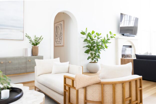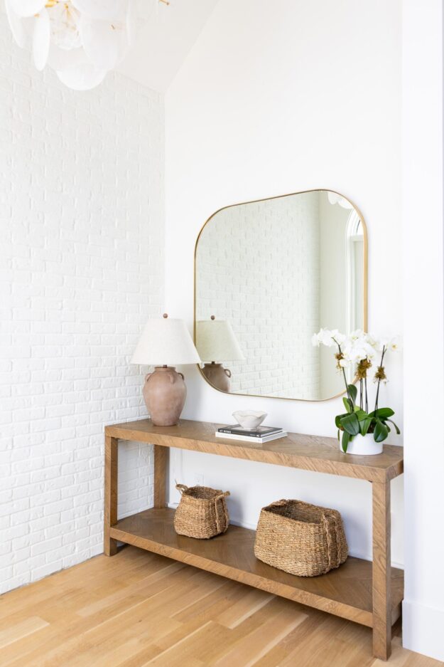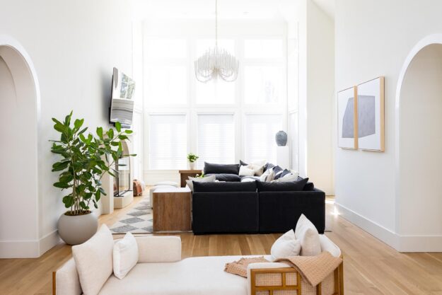 This lakefront home in Orlando underwent an extensive whole-house renovation that both refreshed existing interior spaces and converted a porch into interior living space. The result is a stunning new home with quality finishes, thoughtful details, and a recurring arch design theme. Along with structural changes, the house received fresh wall paper and paint, and all the wood floors were sanded, stained, and refinished.