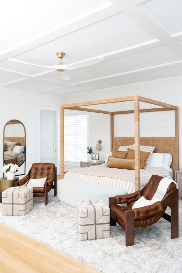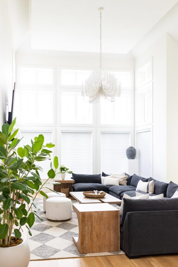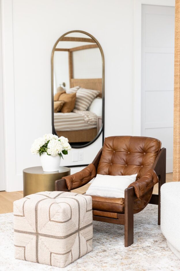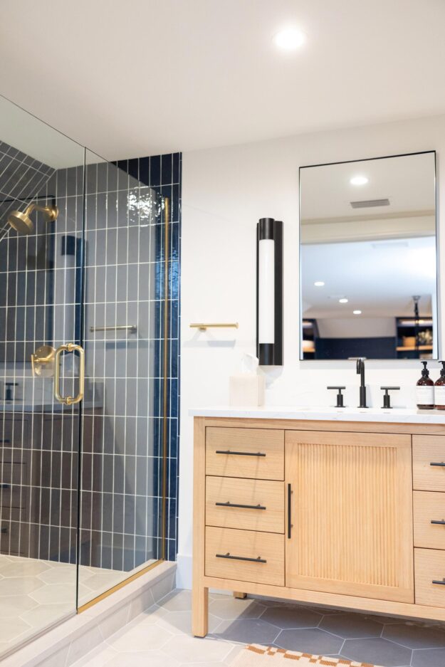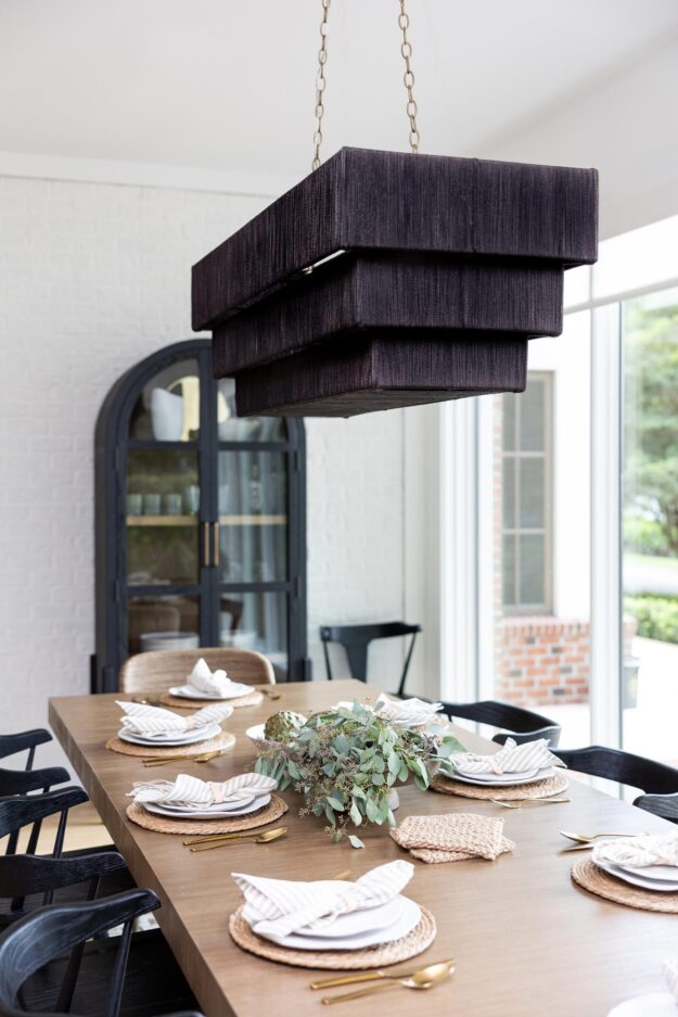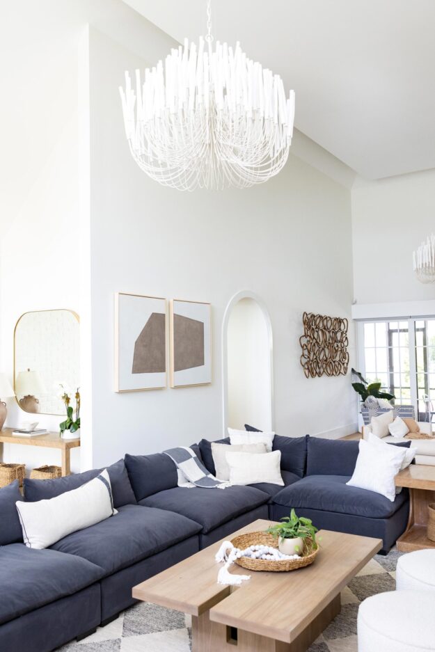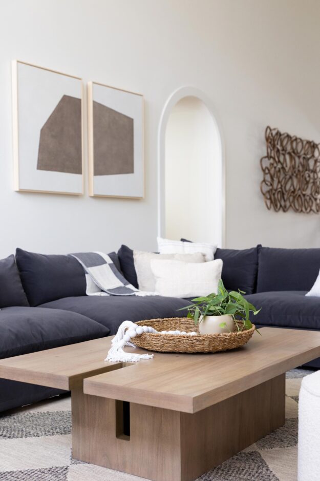 The living room was refreshed with new lighting and a custom fireplace surround. New arched doorways were also framed and trimmed, connecting a clean geometric theme between living spaces.